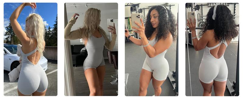 • For Daily Wear:Seamless 90% Nylon, 10% Spandex fabrics have a more natural feeling than polyester ones which makes it perfect for everyday wear. A gusset crotch to maximize free movement and interlock seams to minimize rubbing and chafing make these romper for women the perfect for working out.