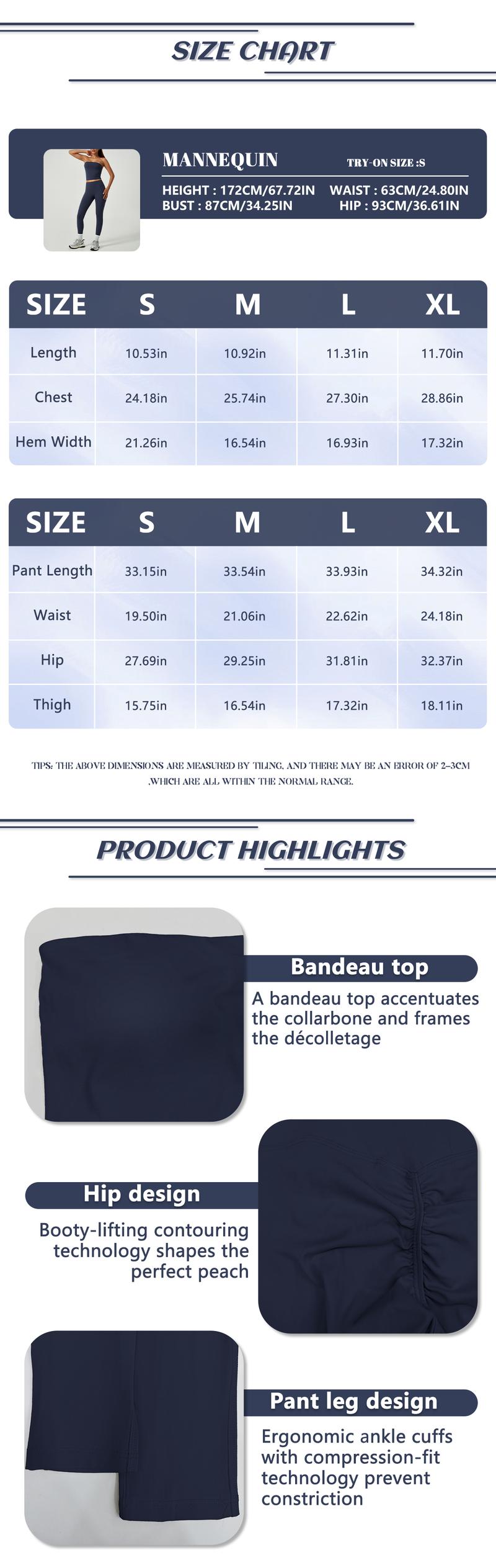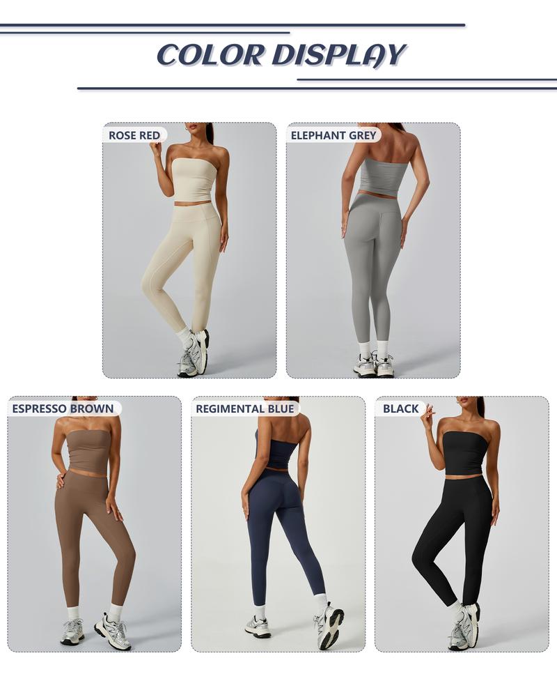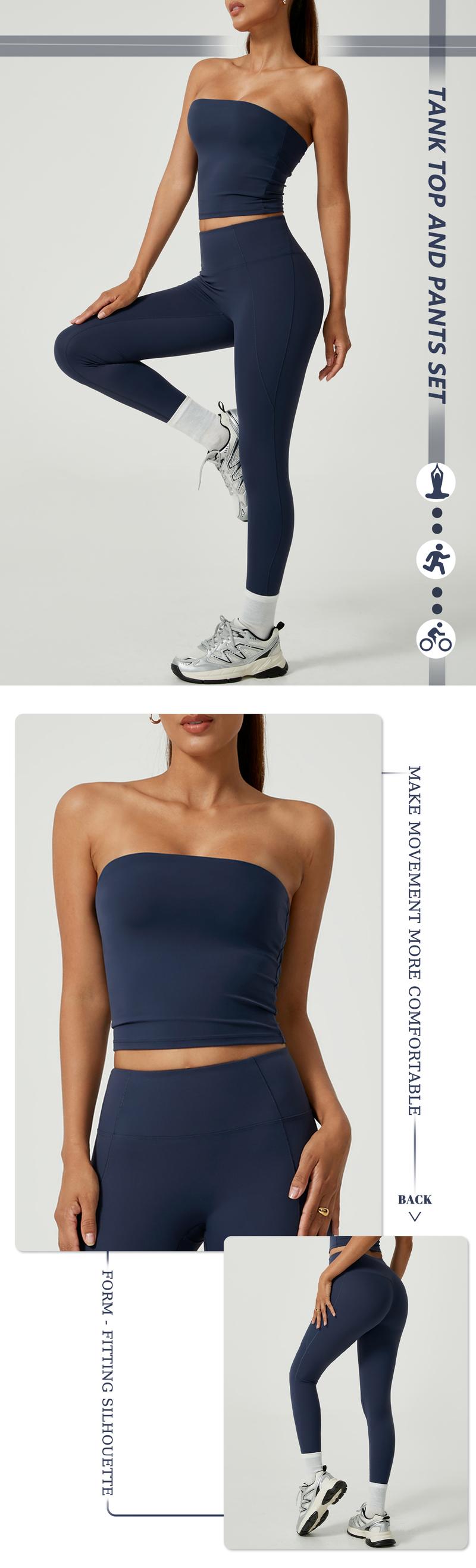- Stylish Tube Top Design:The strapless crop top adds a fashionable touch, making this set suitable for both workouts and casual wear.